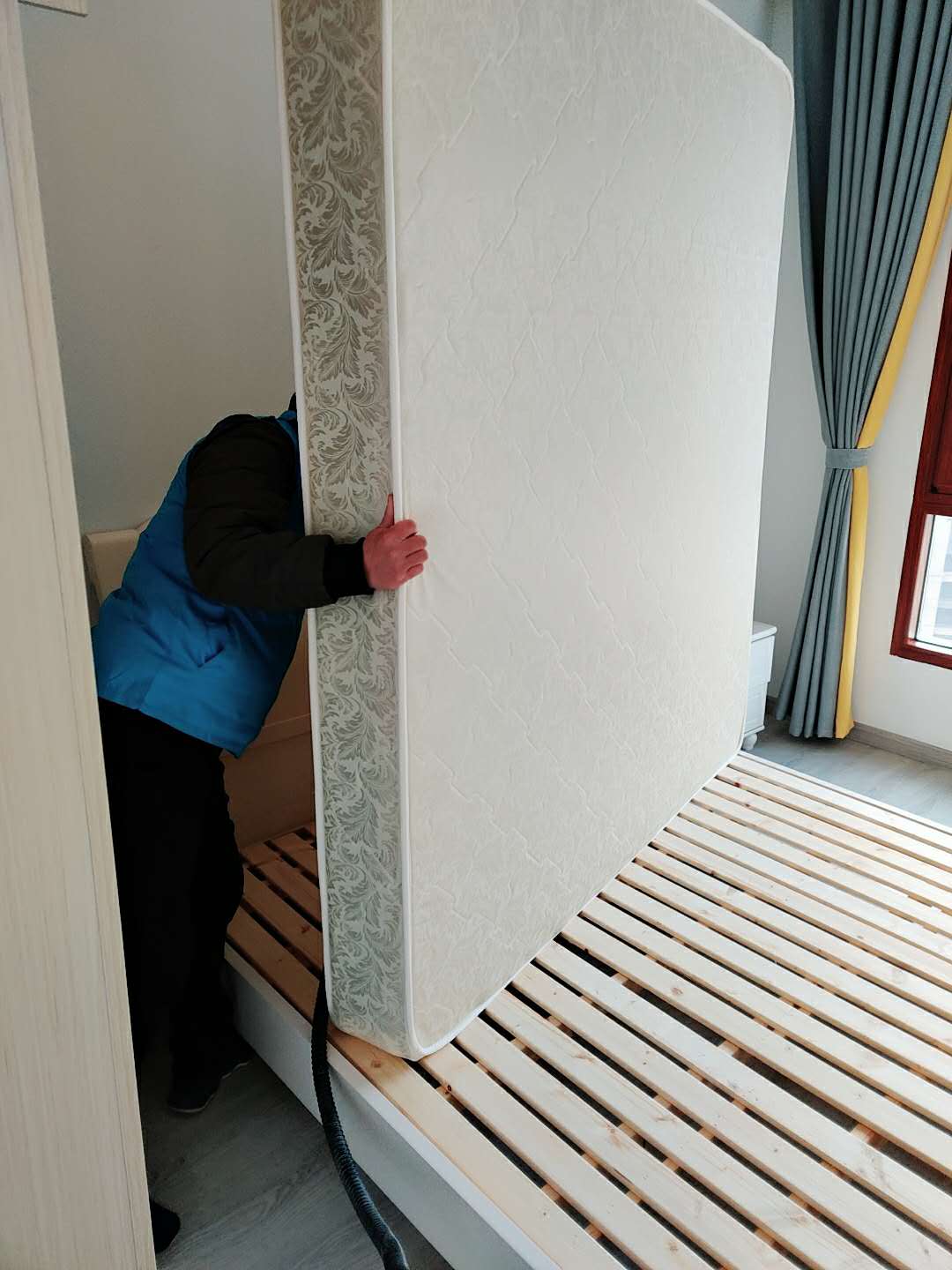 對于木床:床板、背面、噴涂植物精油甲醛凈,表面有油漆味道用油漆除味劑擦拭;皮床:表面的的皮革部分用苯TVOC異味清除劑噴涂,背面和床板噴涂植物精油甲醛凈;棕墊:棕墊要拆開表面的薄膜和床套露出棕墊后直接噴涂植物精油甲醛凈,如果拆不開先噴苯TVOC異味清除劑、再噴植物精油甲醛凈,要噴濕噴透;對于乳膠床墊:直接噴涂苯TVOC異味清除劑。清除過程中要注意床墊比較厚噴涂苯TVOC異味清除劑盡量噴濕噴透(一張床墊大約噴500-800ML清除劑)